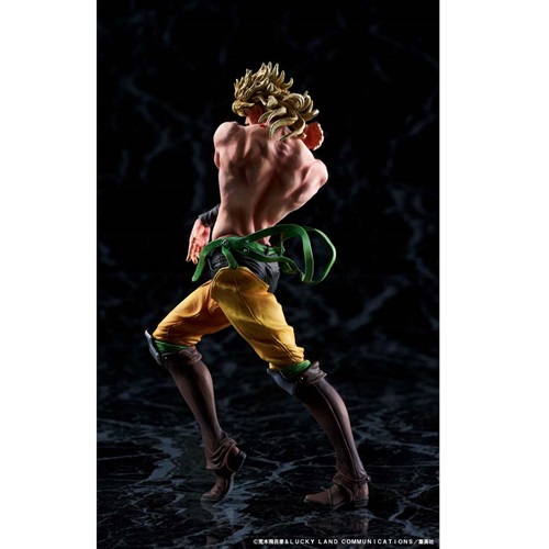 La statua di Shadow Dio è stata scolpita con una precisione straordinaria. Ogni aspetto del suo design, dalle sue vesti eleganti alla sua muscolatura scolpita, è stato riprodotto fedelmente. La posa scelta è il suo vero punto di forza: è una posa statica, ma carica di un’energia incredibile. È raffigurato con un’ombra che nasconde il suo volto, un riferimento diretto alle sue prime apparizioni nell’anime. Questo dettaglio non è solo esteticamente gradevole, ma aggiunge un senso di mistero e minaccia al modello. La sua mano è sollevata, come se stesse per lanciare un attacco micidiale o stesse per usare il suo Stand, The World.