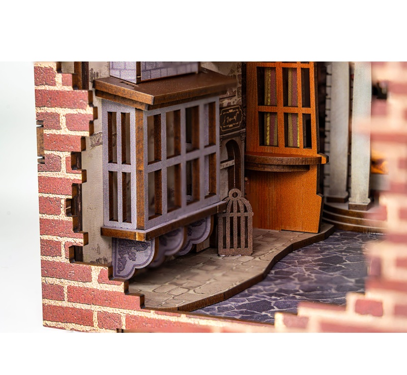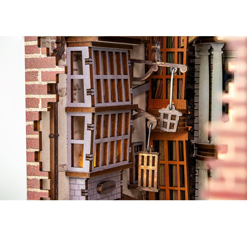 Dettagli Architettonici: Il kit riproduce fedelmente le iconiche facciate dei negozi, come la bottega di bacchette di Ollivander. Di conseguenza, ogni sguardo rivelerà un nuovo particolare nascosto.