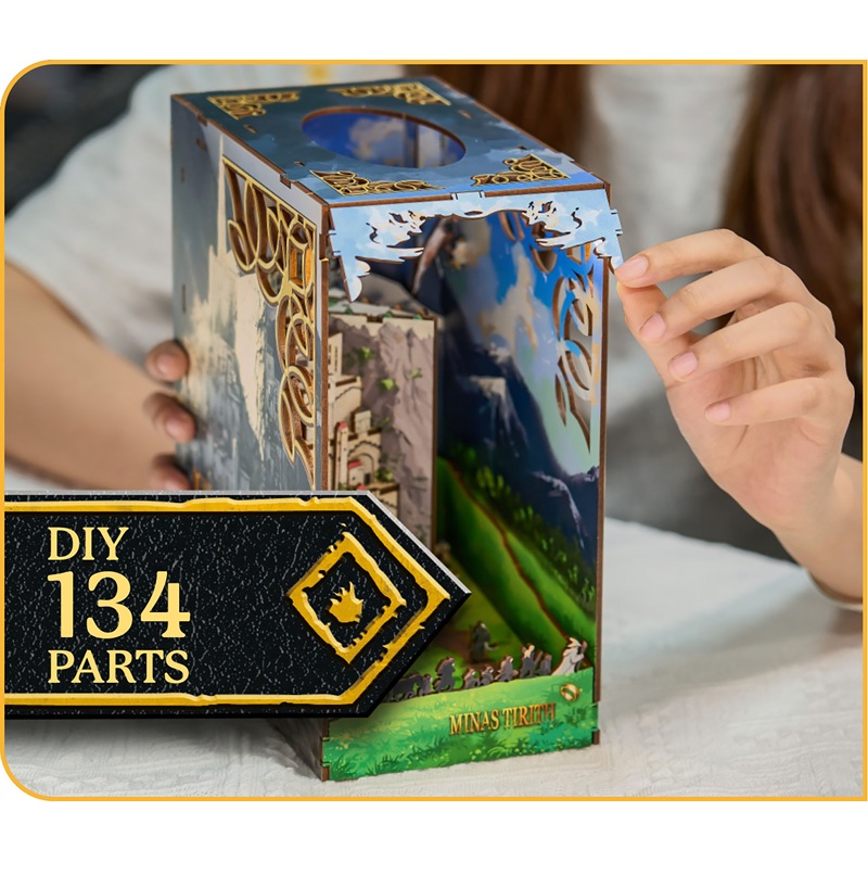 Rivivi la maestosità della Terra di Mezzo con il Book Nook di Minas Tirith di Revell. Questo straordinario diorama tridimensionale riproduce la capitale di Gondor in ogni suo livello. Una volta posizionato tra i tuoi libri, trasformerà il tuo scaffale in un portale verso il regno degli uomini.