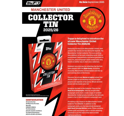 Eroi di oggi e leggende, il Tin Collector è una nuova entusiasmante aggiunta alla raccolta di carte sportive. Con 2 carte parallele numerate in ogni scatola, più la possibilità di autografo all’interno delle tin fortunate, non c’è modo migliore iniziare la tua raccolta del 2025/26!