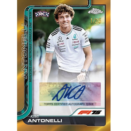 Si parte! La collezione 2025 Topps Chrome Formula 1® è arrivata, con più autografi F1® che mai e il maggior numero di rookie nella storia di Topps F1®.