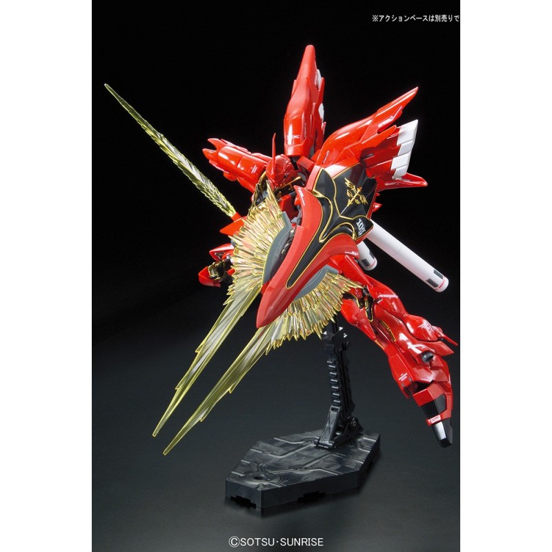 RG 1/144 MSN-06S Sinanju. Un capolavoro Gunpla con finitura rossa lucida e fregi dorati placcati. Dettagli incredibili, posabilità estrema e qualità Real Grade.