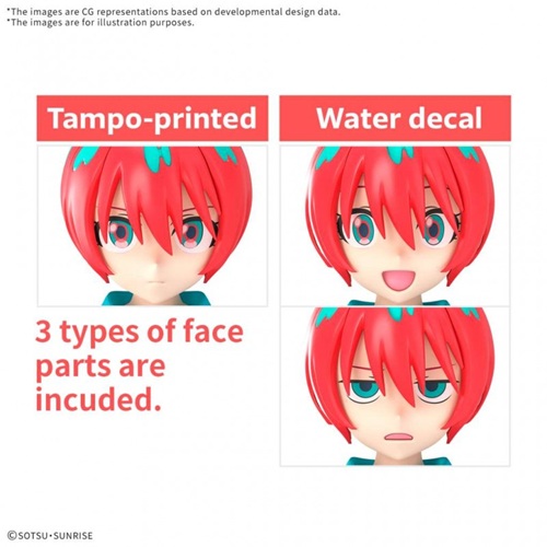 Infatti, c’è un volto pre-stampato e due per decalcomanie ad acqua.