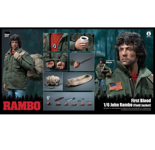La figure da collezione “Rambo: First Blood – 1/6 John Rambo (Field Jacket)” è alta 30,8 cm (12,13 pollici) e presenta un corpo completamente snodabile.